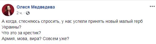 "А когда, стесняюсь спросить, у нас успели принять новый малый герб Украины?
