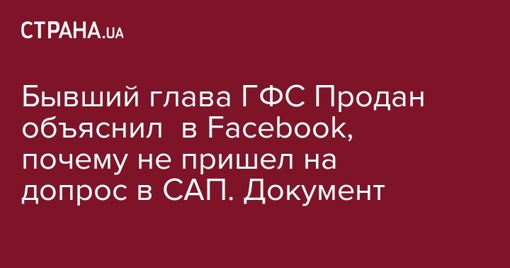 Как сообщала Страна, ранее Холодницкий пожаловался, что экс-глава ГФС Продан не пришел на допрос в САП.