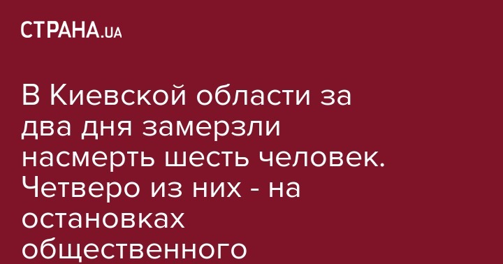 В Киевской области за минувшие выходные, 17 и 18 ноября, от переохлаждения умерли шестеро человек, причем четверо из них замерзли на остановках общественного транспорта. Об этом сообщила пресс-служба Национальной полиции области.