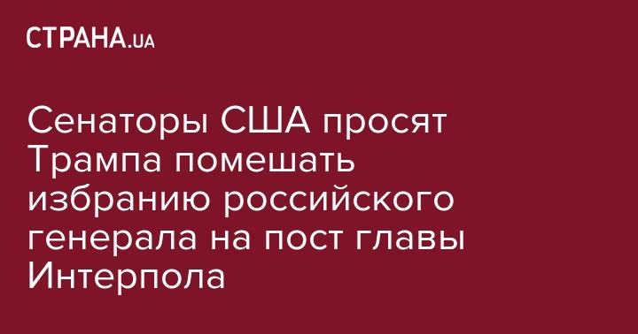 Сенаторы США просят Трампа помешать избранию российского генерала на пост главы Интерпола
