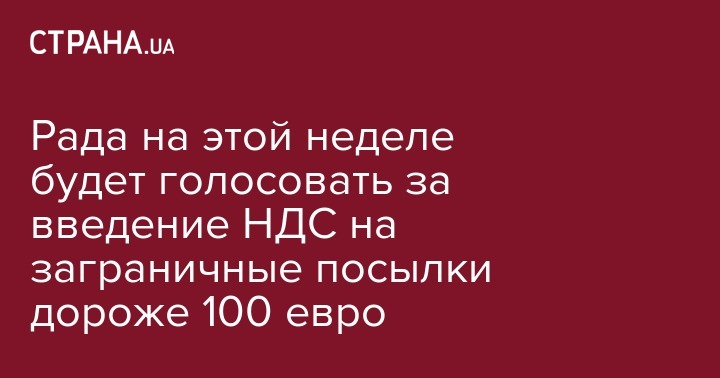 Согласно расписанию заседаний Рады, голосовать за принятие проекта закона депутаты будут в четверг, 22 ноября. Отметим, что, согласно данному законопроекту, с 1 января 2019 по 30 июня 2019 года предусмотрено обложение НДС заграничных посылок, стоимость которых превышает эквивалент 150 евро, а с 1 июля 2019 - 100 евро.