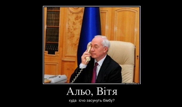 В соцсетях тогда начали набирать популярность фотожабы с премьер-министром Азаровым и подписью: "Альо, міліція?! На Кріщатікі бімба!". А также их вариации.