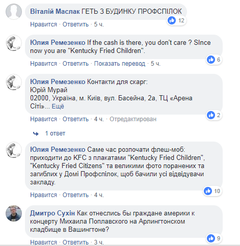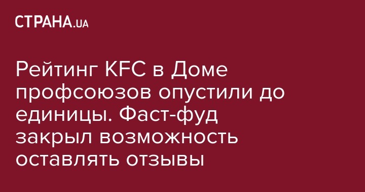 После открытия ресторана KFC в здании Профсоюзов в Киеве, которое состоялось 21 ноября, пользователи Facebook обвалили рейтинг страницы этой сети в Украине. Администраторы паблика в свою очередь 22 ноября закрыли возможность оставлять отзыв.