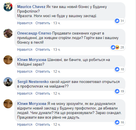 "Продавать жареных цыплят в помещении, где заживо сгорели люди? Гореть вам и вашему бизнесу в аду!", - пишут возмущенные пользователи Facebook.