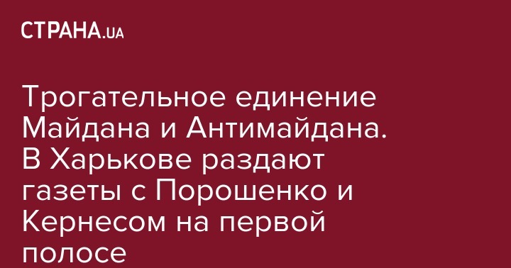 Трогательное единение Майдана и Антимайдана. В Харькове раздают газеты с Порошенко и Кернесом на первой полосе