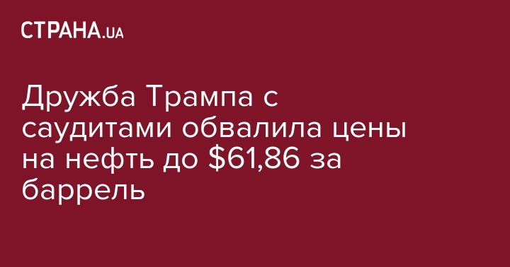 По состоянию на 08:30 по киевскому времени, цена за баррель Brent составляет 61,86 долларов за баррель. Это на 2,5% ниже уровня закрытия предыдущих торгов. Снижение цены на нефть произошло после заявления президента США Дональда Трампа о дальнейших отношениях с Саудовской Аравией.