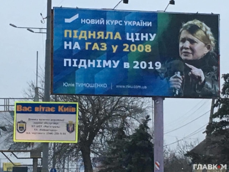 Борды внешне похожи на агитационную наружную рекламу "Батькивщины", на них так же написано "Новый курс Украины" и даже есть ссылка на сайт одноименного форума, который проводила Тимошенко в Киеве.