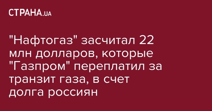 "Нафтогаз" засчитал 22 млн долларов, которые "Газпром" переплатил за транзит газа, в счет долга россиян
