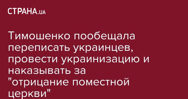 "Мы предусмотрим суровые наказания за любой вандализм, призывы к насилию, введем ответственность за отрицание нашей церкви. Мы дадим полноценную поддержку и надежную охрану нашим украинским иерархам, защитим храмы, будем питать понимание и толерантность между представителями разных религиозных конфессий", — сказала Тимошенко.