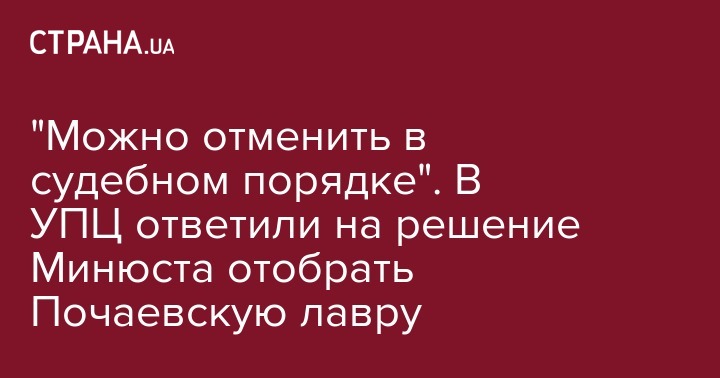 "Обращаю внимание: решение Минюста об отмене государственной регистрации (изъятия из реестра записи) права пользования сооружениями Свято-Успенской Почаевской лавры не отменяет договор о пользовании от 2003 года", – заявил протоиерей.