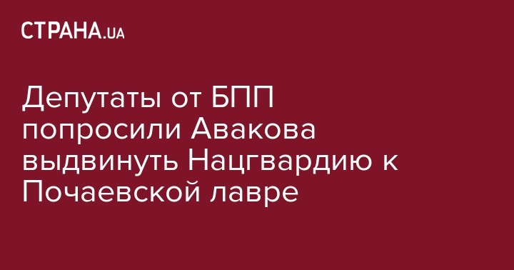 Депутаты от партии Блок Петра Порошенко "Солидарность" Тарас Юрик, Олег Барна и Александр Дехтярчук обратились к главе МВД Арсену Авакову с просьбой обеспечить порядок на территории Свято-Успенской Почаевской лавры силами Нацгвардии. Об этом шла речь во время брифинга, запись которого опубликована на YouTube-канале RadaTVchannel.