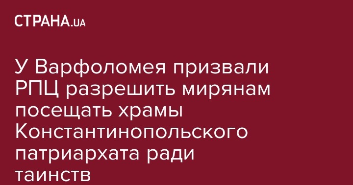 У Варфоломея призвали РПЦ разрешить мирянам посещать храмы Константинопольского патриархата ради таинств