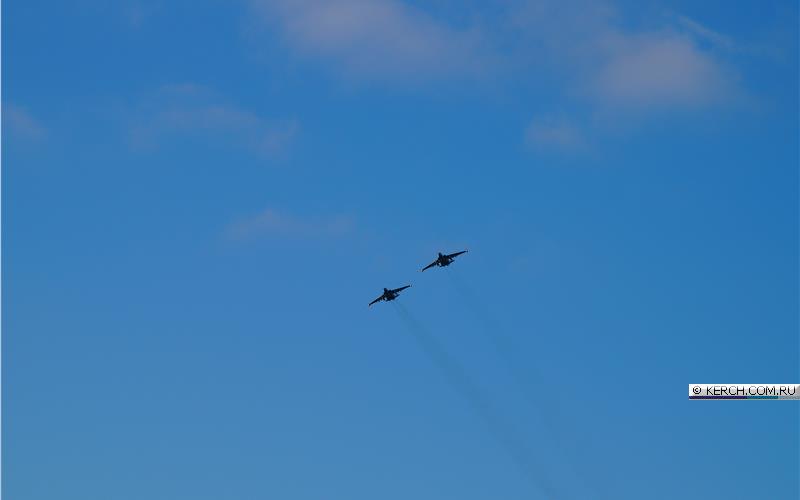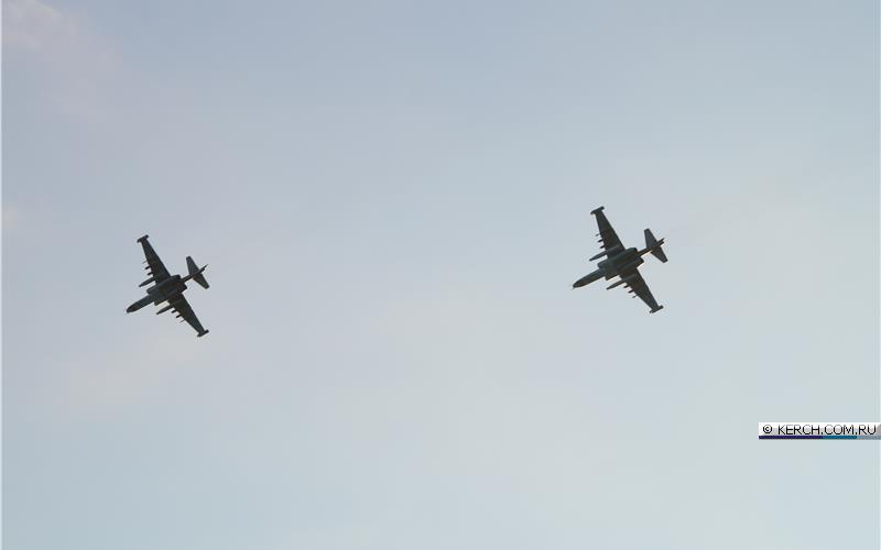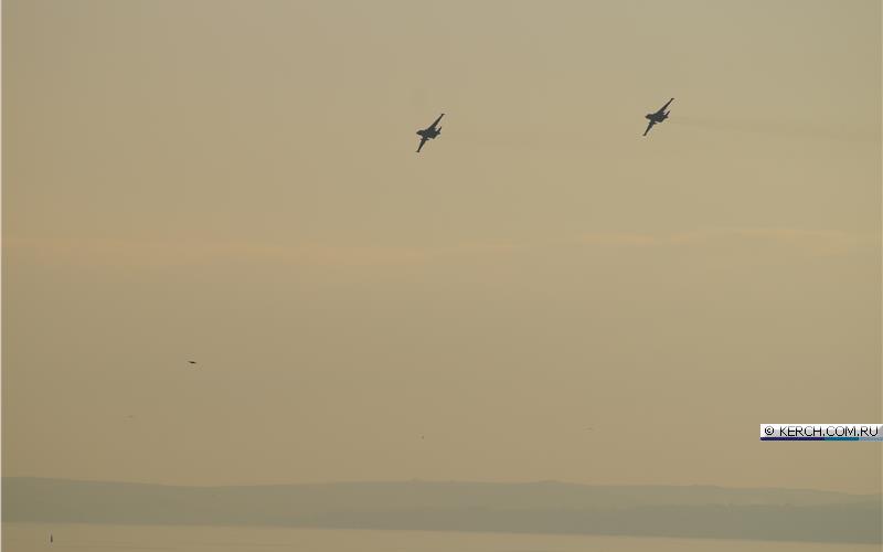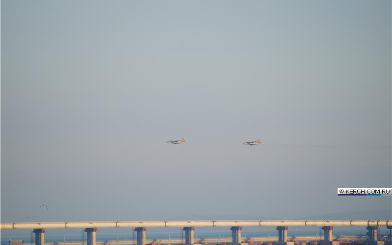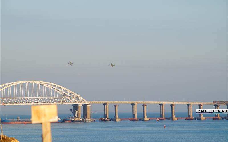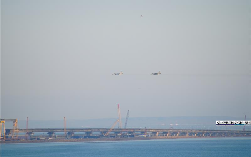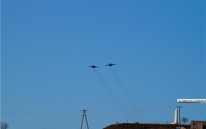 Судя по снимкам, штурмовики пролетели вдоль Крымского моста и городом Керчь. Боевые машины видел житель города Алексей Ягодинский.