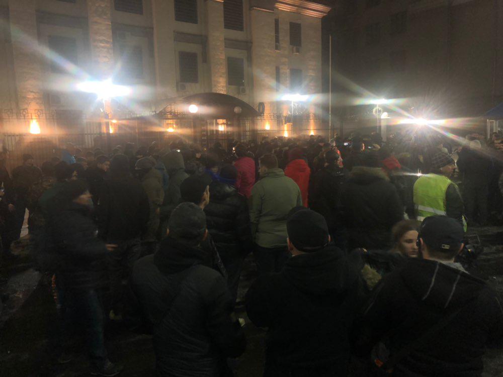 00:50 Под посольство РФ пришли уже около двух сотен человек. Ситуация в целом спокойная. Люди периодически стреляют фейерверками, но вверх, а не по зданию, сообщает корреспондент "Страны".