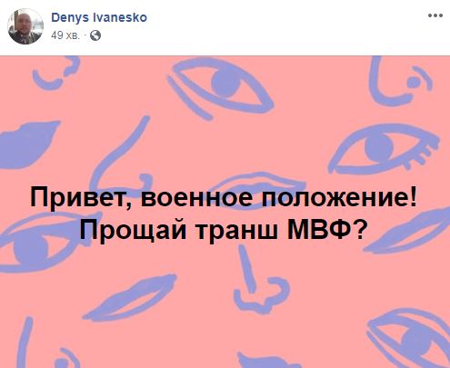 14.50 Украинский журналист, директор информационного агентства "Украинские новости" Денис Иванеско емко высказал свое мнение о введении военного положения: