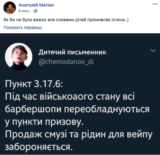 14.05 Тем временем, главный военный прокурор Украины Анатолий Матиос шутит шутки.