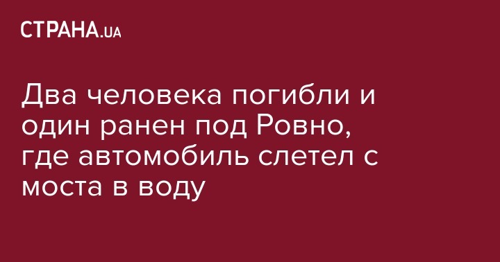 Сегодня, 25 ноября, в Ровенской области автомобиль упал с моста в водоем, погибли два человека и еще один человек получил травмы. Об этом сообщает пресс-служба полиции области.