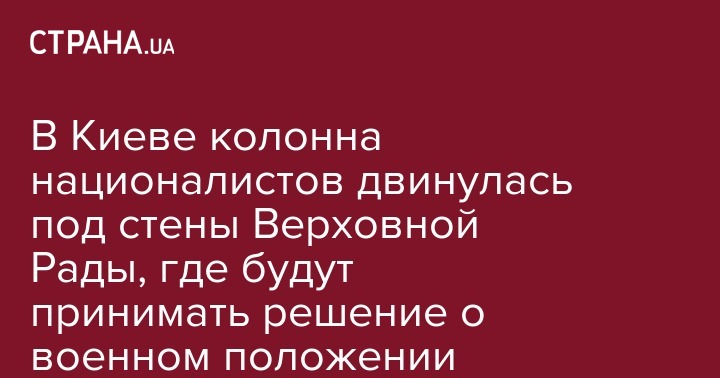 Колонна националистов после митинга под АП направилась под стены Верховной Рады, где сегодня будет приниматься решение о введении военного положения в Украине.