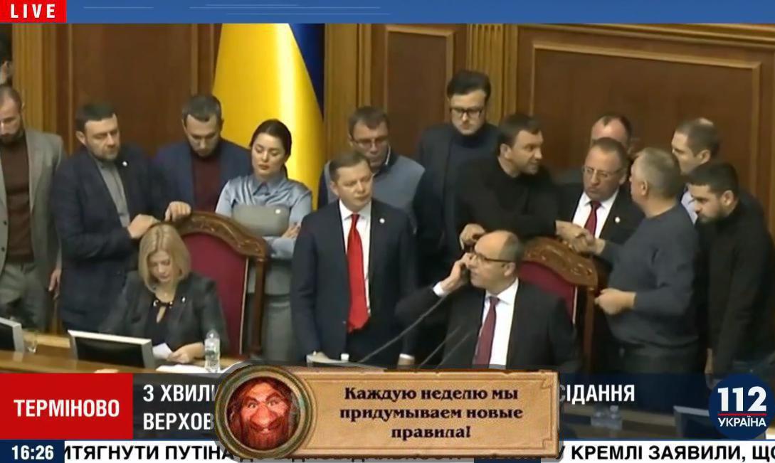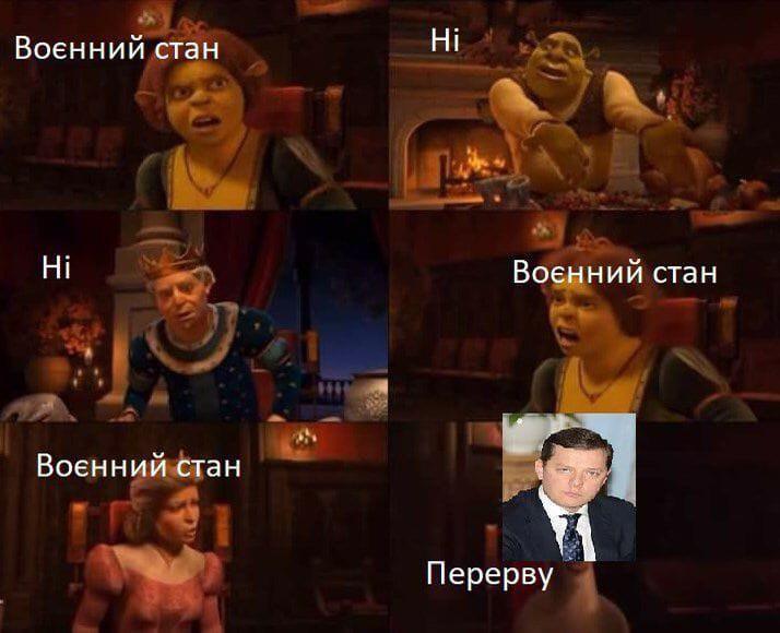 Вспомнили и о том, как лидер Радикальной партии Олег Ляшко и его однопартийцы сегодня блокировали трибуну в Верховной Раде, требуя изменить порядок осуждения. Планировалось, что с 5-минутной презентацией решения и рекомендаций СНБО выступит Петр Порошенко, потом будет перерыв и голосование. Нардепы требовали в начале дать перерыв для консультаций, а уже потом выступление президента и голосование.