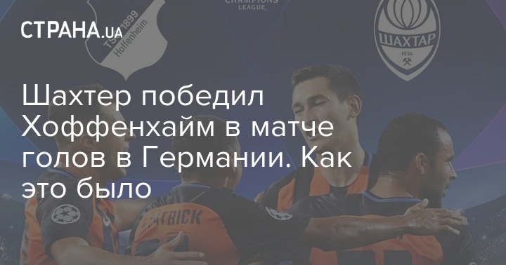 Во вторник, 27 ноября, в 5-м туре Лиги Чемпионов Шахтер на выезде обыграл немецкий Хоффенхайм. Победу нашей команде принес гол Тайсона в компенсированное судьей время. "Горняки" набирают 5 очков и продолжают борьбу за выход в 1\8 Лиги Чемпионов.