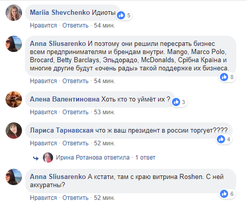А также интересуются судьбой магазина Roshen внутри, который "торгует с Россией".
