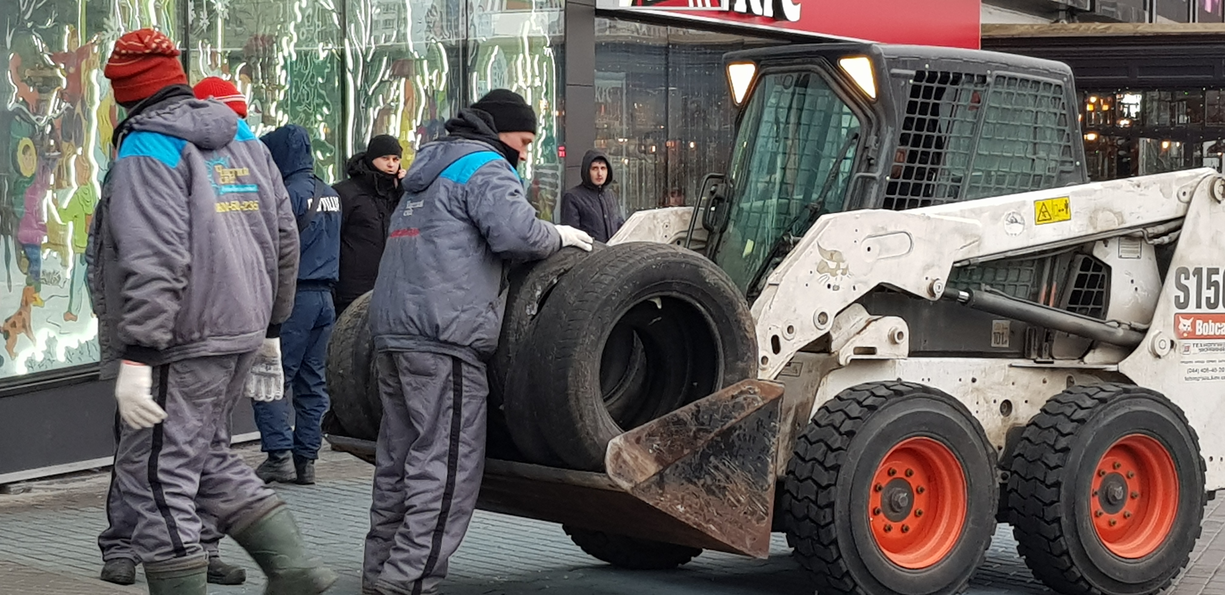 На данный момент сотрудники ТРЦ отмывают фасад от надписей "Бизнес на крови", "Не покупай у оккупантов" и прочих. Также они вывозят покрышки, которыми активисты загородили вход в здание торгово-развлекательного центра.
