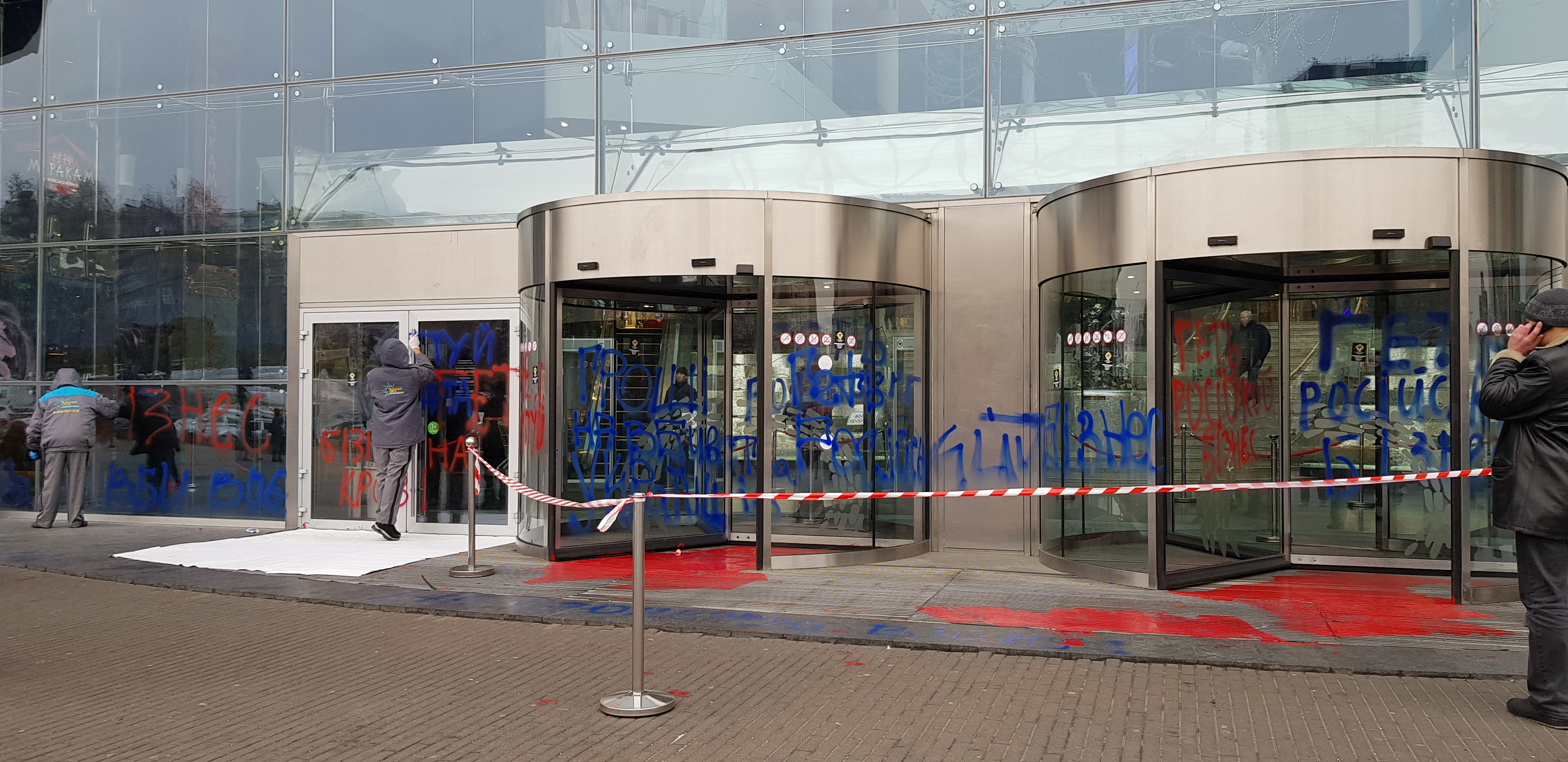 ТРЦ Ocean plaza в Киеве возобновил работу. Здание отмывают от надписей. Фото