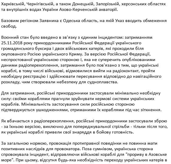 Как сообщала "Страна", в новой редакции решения СНБО срок действия военного положения сокращается с 60 до 30 суток, и предполагается, что оно продлится с 14:00 26 ноября по 14:00 26 декабря 2018 года.