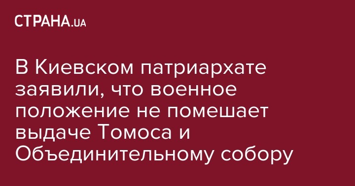 В Киевском патриархате заявили, что военное положение не помешает выдаче Томоса и Объединительному собору