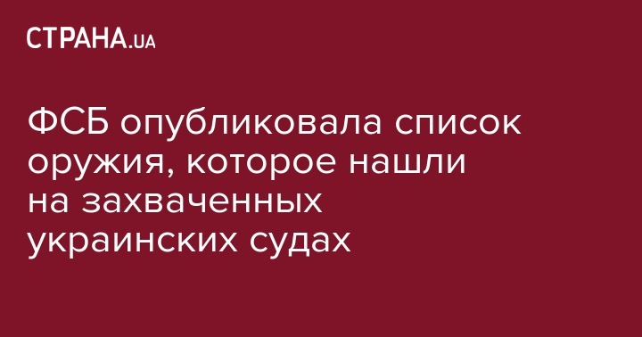 "На задержанных военных судах ВМС Украины находились следующие виды вооружения и боеприпасов: 30 мм пушка – 4 единицы, автоматический гранатомет АГС -17 – 4 единицы, пулемет "ДШК" (Дягтерева-Шпагина крупнокалиберный) 12,7 мм — 2 единицы, пулемет ПКТ (пулемет Калашникова танковый) 7,62мм – 4 единицы, автомат АК-47 5,45мм – 13 единиц, пистолет ПМ 9мм – 4 единицы, травматический пистолет 9 мм – 1 единица, сигнальный пистолет ПС – 1 единица, осколочно-фугасный снаряд 30 мм – 765 единиц", — говорится в документе.