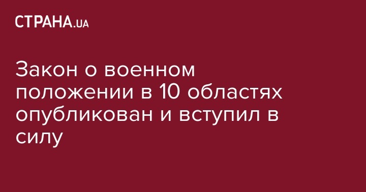 Закон о военном положении в 10 областях опубликован и вступил в силу