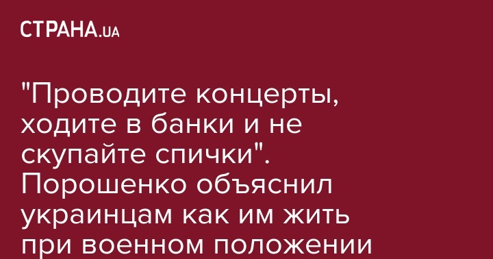 Он отметил, что не стоит паниковать и бежать в магазины и скупать спички и соль". "Проводите концерты, ходите в банки. Не надо бежать в магазины и скупать спички и соль... Никаких ограничений на снятие депозитов, операций по обмену валют, поездок за границу для украинских граждан не будет", - подчеркнул Порошенко. Глава государства добавил, что поручил председателю Национального банка провести соответствующую разъяснительную работу с банками.