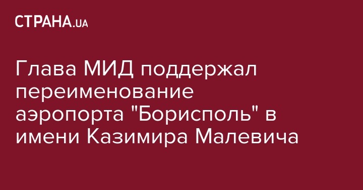 Министр иностранных дел Павел Климкин поддержал присвоение международному аэропорту "Борисполь" имени художника Казимира Малевича.