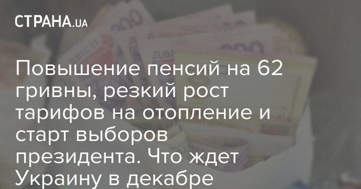 В декабре в Украине пересчитают пенсии, введут новые тарифы на электроэнергию и проведут местные выборы. Правда, выборы не смогут провести в 10 областях, где ввели военное положение. Ограничения в связи с военным положением закончатся 26 декабря, если власти не решат продлить его.