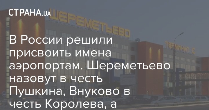 Так, главному аэропорт России - Шереметьево - присвоят имя поэта Александра Пушкина.