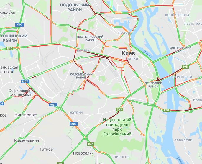 Как свидетельствует Google Maps, тянучки есть в каждом из районов города. Наибольшие проблемы наблюдаются в центре Киева, на улице Короленковской, на проспекте Валерия Лобановского, на улице Жилянской, на улице Вузовской, на улице Николая Трублаини, на Большой Окружной дороге, на улице Соборной, на проспекте Победы, на улице Семена Скляренко и на проспекте Степана Бандеры.