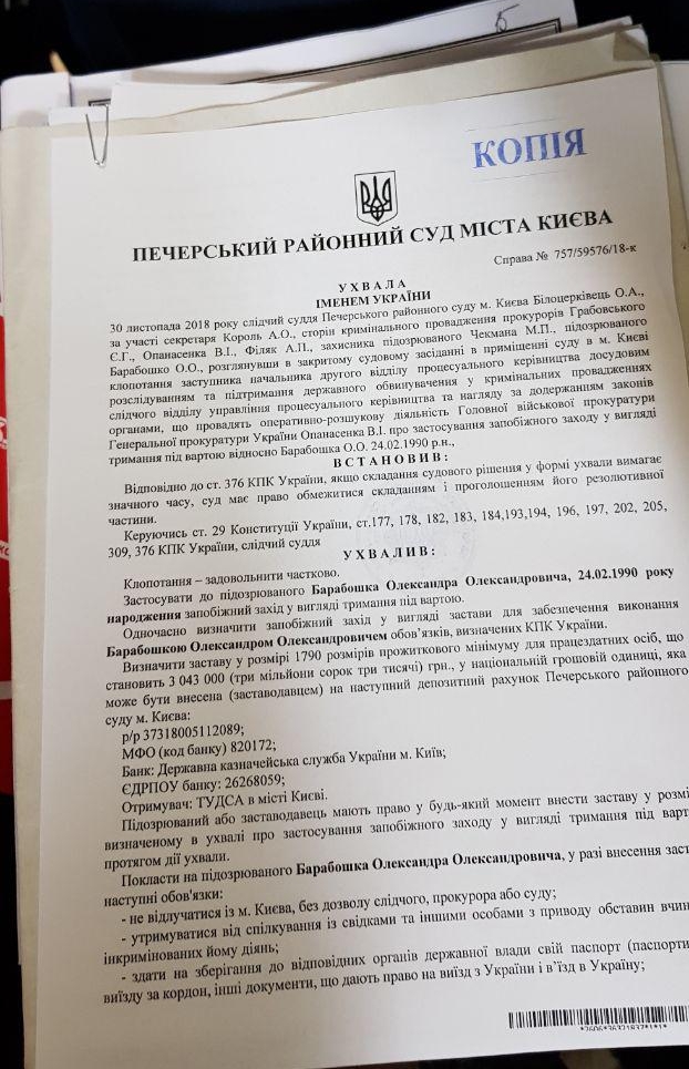 14:30 Барабошко взяли под арест на 2 месяца с альтернативой внесения залога в 3 млн.