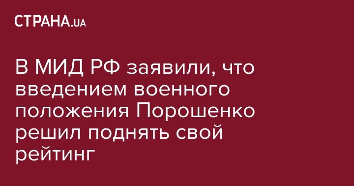 В МИД РФ заявили, что введением военного положения Порошенко решил поднять свой рейтинг