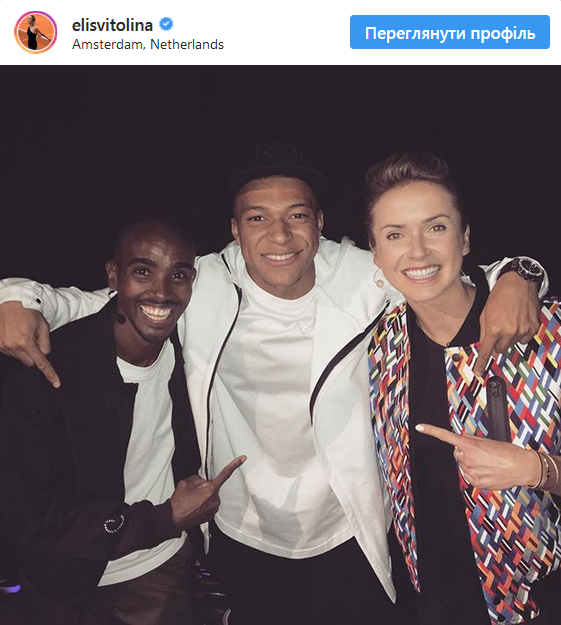 Килиан Мбаппе в центре, марафонец Мо Фарах слева, фото: instagram.com/elisvitolina