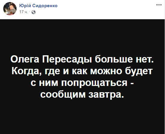 По информации "SQ", у Пересады остались жена и дети.