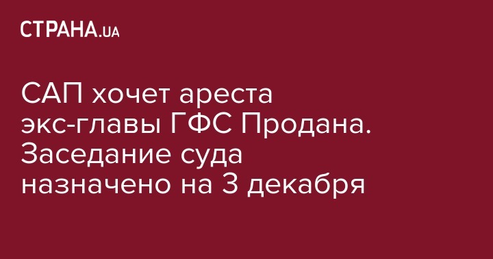 САП хочет ареста экс-главы ГФС Продана. Заседание суда назначено на 3 декабря