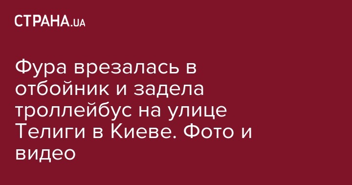 Фура врезалась в отбойник и задела троллейбус на улице Телиги в Киеве. Фото и видео
