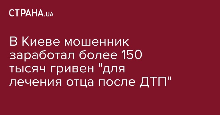 В Киеве жительница Печерского района отдала мошенникам более 150 тысяч гривен за "операцию для отца". Об этом "Страна" узнала из своих источников в правоохранительных органах Киева.