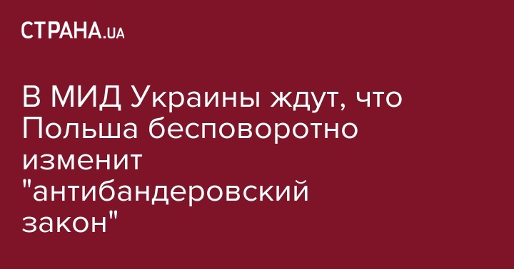 В МИД Украины ждут, что Польша бесповоротно изменит "антибандеровский закон"