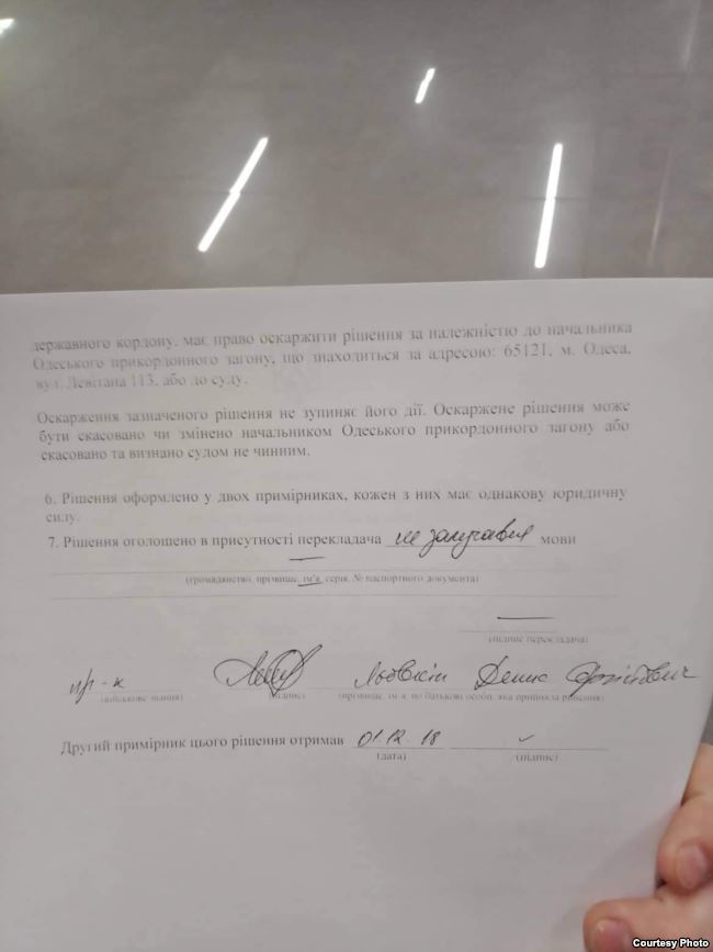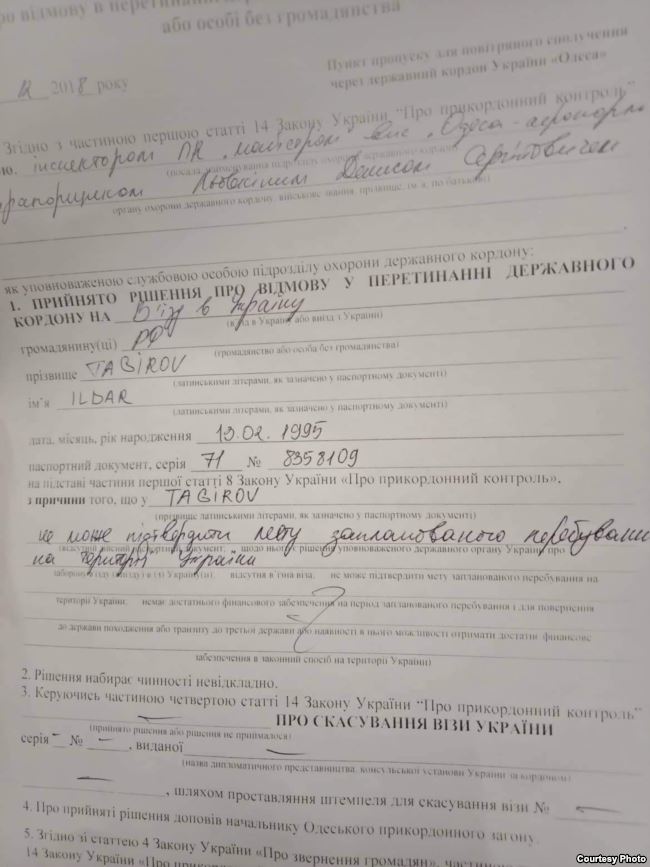 "Как стало известно команде "U! Zahvati", 1 декабря около 16.00, Ильдара Тагирова не пустили в Одессу, мотивируя это в официальных документах тем, что "не он может подтвердить цель пребывания в Украине", - сказано в сообщении.