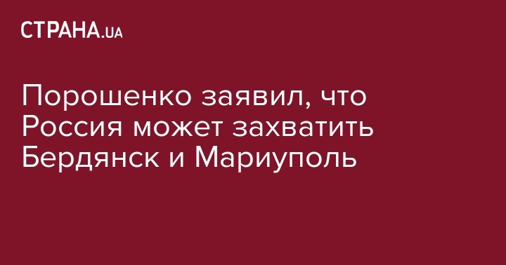 Россия пытается получить наземный коридор из Донбасса в аннексированный Крым, захватив Мариуполь и Бердянск. Об этом президент Петр Порошенко заявил в интервью немецкому Funke Media Group, сообщает пресс-служба президента.