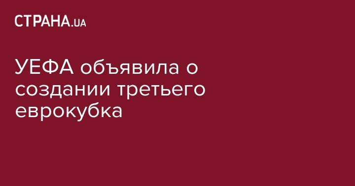 УЕФА объявил о создании третьего клубного турнира с 2021 года. Новый турнир будет проводиться по той же схеме, что Лига чемпионов и Лига Европы.