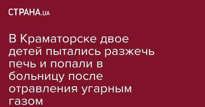 "В детскую больницу города Краматорска были госпитализированы двое детей с отравлением угарным газом в тяжелом состоянии. Вероятная причина трагедии - попытка детей самостоятельно разжечь печь на твердом топливе", - отметили в ведомстве.