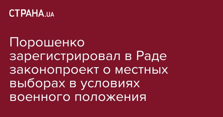 Президент Украины Петр Порошенко зарегистрировал в Верховной Раде законопроект № 9357 о проведении выборов в объединенных территориальных общинах в условиях военного положения. Об этом говорится на сайте парламента.