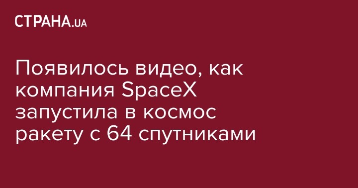 Появилось видео, как компания SpaceX запустила в космос ракету с 64 спутниками